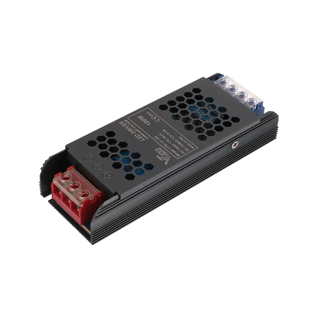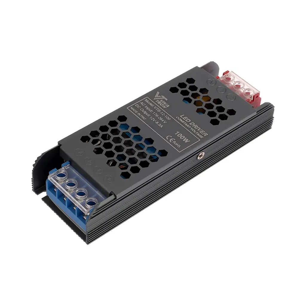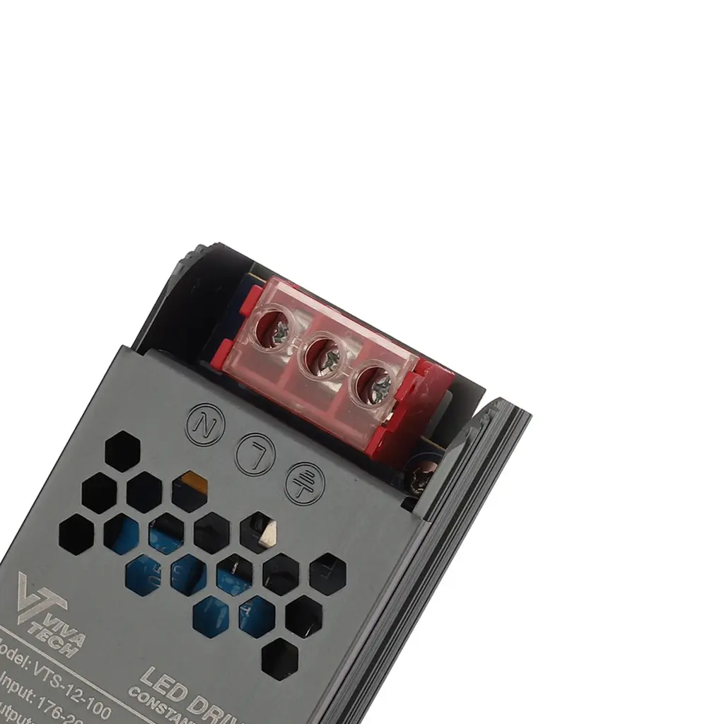 ترانس اسلیم 12 ولت VIVATECH با طراحی باریک و وزن سبک خود، نصب آسانی را در فضاهای محدود مانند پشت تابلوها، داخل حروف برجسته و نورهای مخفی فراهم میکند. بدنه آلومینیومی و سیستم خنکسازی مشبک آن موجب تهویه مناسب هوا و جلوگیری از داغشدن بیش از حد میشود، در نتیجه عمر مفید ترانس بهطور چشمگیری افزایش مییابد. این ترانس با تبدیل برق شهری به ولتاژ ایمن و ثابت 12 ولت و خروجی 100 وات، از آسیب به تجهیزات حساس مانند نوارهای LED و نئون فلکسی جلوگیری کرده و عملکردی پایدار و مطمئن ارائه میدهد.
