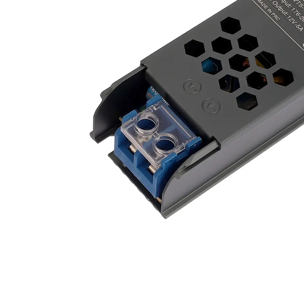 ترانس اسلیم 12 ولت VIVATECH با طراحی باریک و وزن سبک خود، نصب آسانی را در فضاهای محدود مانند پشت تابلوها، داخل حروف برجسته و نورهای مخفی فراهم میکند. بدنه آلومینیومی و سیستم خنکسازی مشبک آن موجب تهویه مناسب هوا و جلوگیری از داغشدن بیش از حد میشود، در نتیجه عمر مفید ترانس بهطور چشمگیری افزایش مییابد. این ترانس با تبدیل برق شهری به ولتاژ ایمن و ثابت 12 ولت با خروجی 60 وات، از آسیب به تجهیزات حساس مانند نوارهای LED و نئون فلکسی جلوگیری کرده و عملکردی پایدار و مطمئن ارائه میدهد.