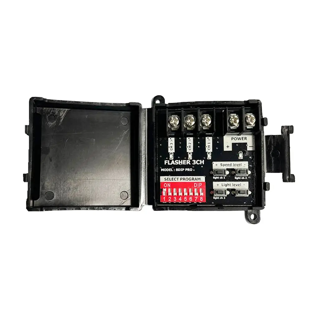 فلاشر یا چشمکزن، دستگاهی الکترونیکی است که وظیفه دارد چراغها یا LED ها را به صورت متناوب و منظم روشن و خاموش کند. فلاشر 3 کانال سناتور در موارد مختلفی از جمله چراغهای راهنمایی خودرو و همچنین تابلوهای LED ثابت بهکار میرود. در ساخت تابلوهای روان، معمولاً از LEDهای کلاهی و اوال استفاده میشود و برای جذابتر کردن جلوه بصری تابلو، از کیت فلاشر LED کمک میگیرند. فلاشر باعث میشود نوشتهها و طرحهای تابلو بیش از پیش توجه مخاطبان را جلب کنند و زیبایی بصری آنها افزایش یابد.