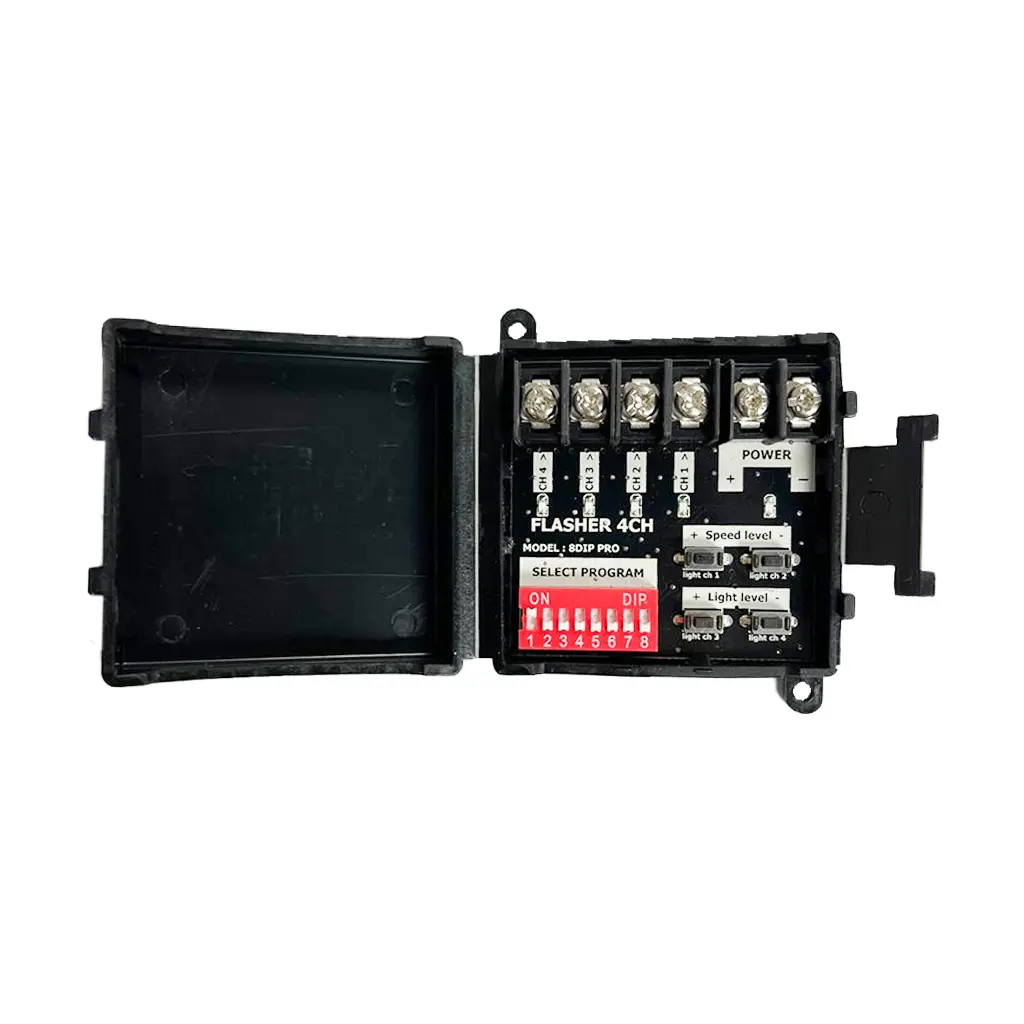 فلاشر یا چشمکزن، دستگاهی الکترونیکی است که وظیفه دارد چراغها یا LED ها را به صورت متناوب و منظم روشن و خاموش کند. فلاشر 4 کانال سناتور در موارد مختلفی از جمله چراغهای راهنمایی خودرو و همچنین تابلوهای LED ثابت بهکار میرود. در ساخت تابلوهای روان، معمولاً از LEDهای کلاهی و اوال استفاده میشود و برای جذابتر کردن جلوه بصری تابلو، از کیت فلاشر LED کمک میگیرند. فلاشر باعث میشود نوشتهها و طرحهای تابلو بیش از پیش توجه مخاطبان را جلب کنند و زیبایی بصری آنها افزایش یابد.
