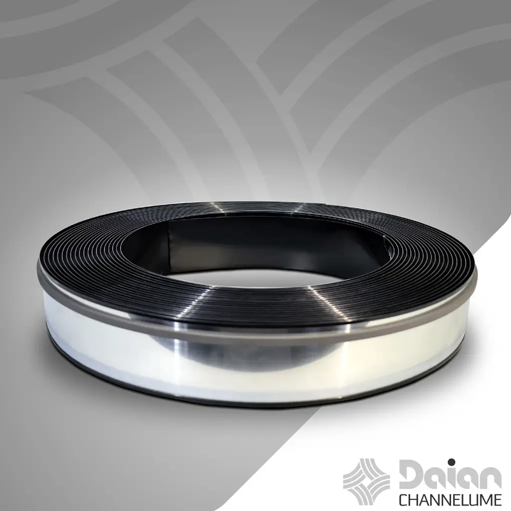 لبه چنلیوم دایان در چهار رنگ سفید، مشکی، طلایی و نقره ای و دو اندازه 7 سانت و 9 سانت قابل استفاده برای تابلوسازی چنلیوم می باشد. ورقهای آلومینیومی لبه چلنیوم در بسته رولهای 30 متری عرضه میشوند، که این ویژگی موجب سهولت در سفارش و صرفهجویی در هزینهها میگردد. این اندازه متراژ امکان اجرای پروژههای مختلف تابلو چنلیوم در ابعاد بزرگ و کوچک را فراهم میکند.
