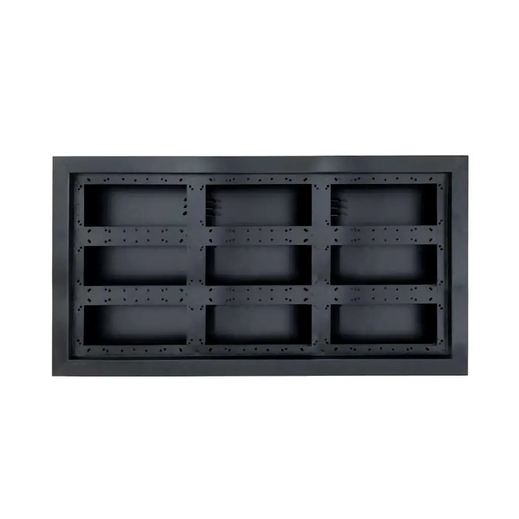 قاب سه در سه تابلو روان ضد آب، بهترین انتخاب برای نصب آسان و ایمن ماژولهای الایدی تابلو روان است. این قابها از ورق ضخیم فلزی (گالوانیزه) با پوشش رنگ کورهای استاتیک ساخته شدهاند که در برابر زنگزدگی، خوردگی و ضربه مقاوم هستند. طراحی حرفهای این قابها باعث میشود تابلو در شرایط آبوهوایی نامناسب نیز دوام بالایی داشته باشد.