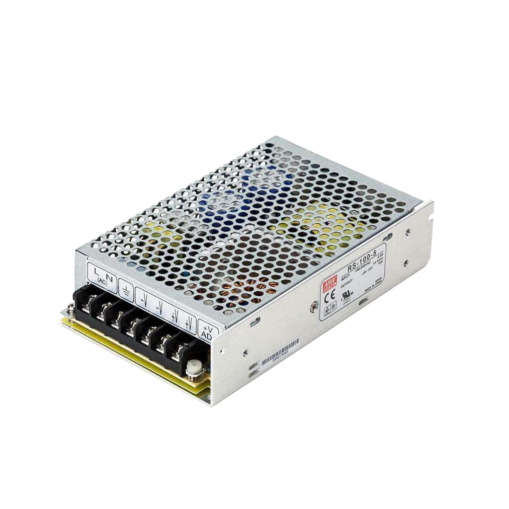 منبع تغذیه مینول سری RS-100-5 با وجود سیستمهای حفاظتی در برابر اضافهبار، نوسانات ولتاژ و اتصال کوتاه، از تجهیزات متصل در برابر آسیبهای احتمالی محافظت میکند.
